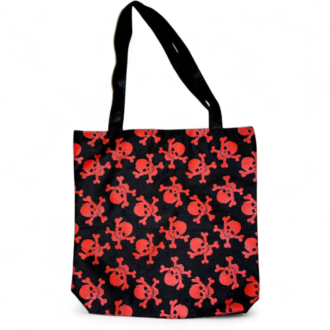 Einkaufstasche mit Aufgedruckten Totenkopfmotiven.